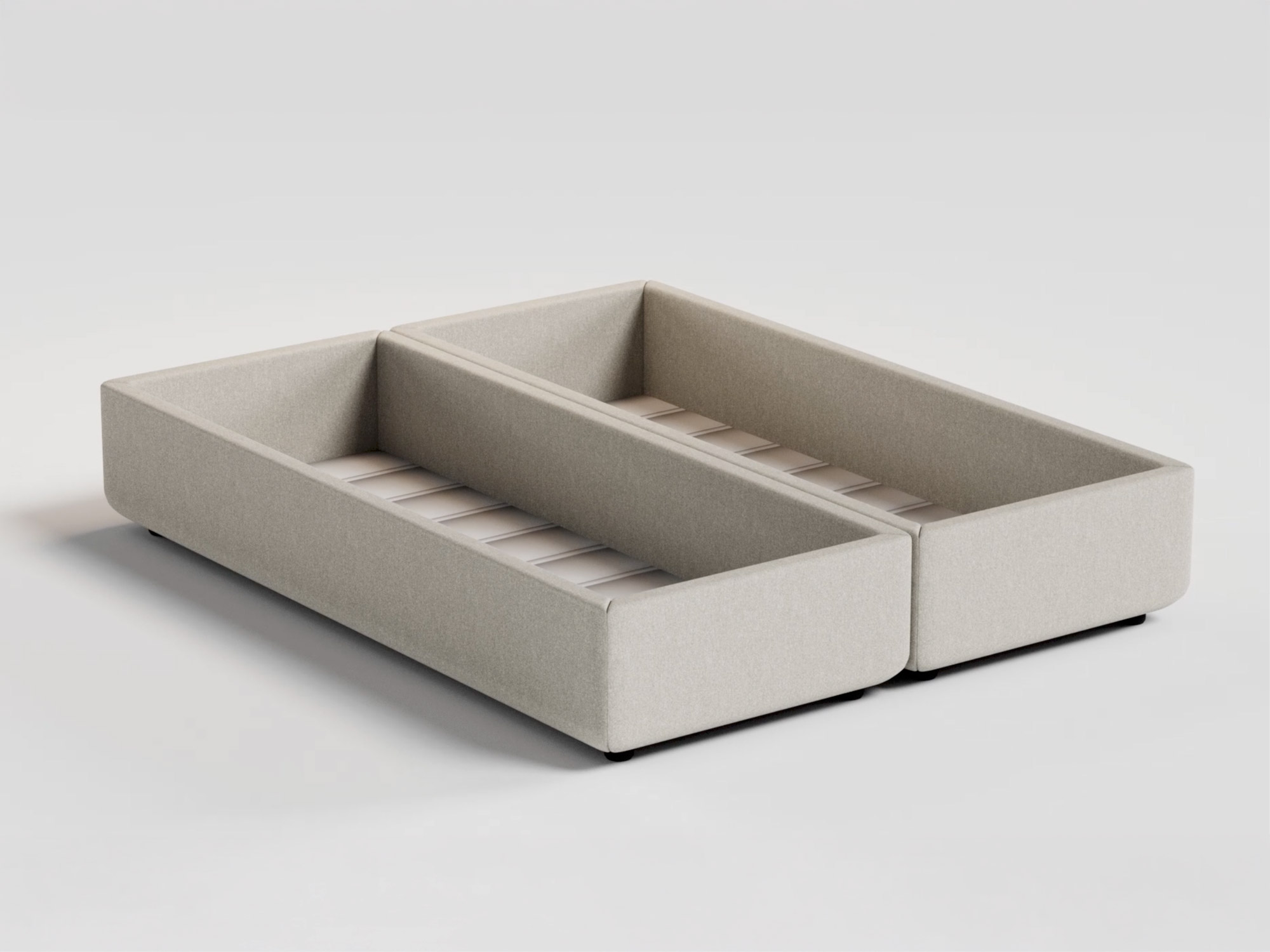 Anche le basi, singole e matrimoniali, sono pensate per garantire comfort e praticità come in tutte le collezioni Noctis. Nella versione singola le staffe di fissaggio permettono di unire le due basi per creare una struttura solida e stabile.