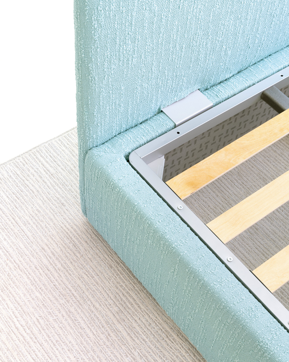 La base Sommier accoglie pannelli modulari che si fissano con una staffa semplice e intuitiva, rendendo la configurazione della testiera pratica e immediata. La testata a filo è pensata per ridurre al minimo l’ingombro, ottimizzando lo spazio con eleganza. Disponibile in varie dimensioni, il sistema si modula con facilità per rispondere a ogni esigenza di spazio e gusto.