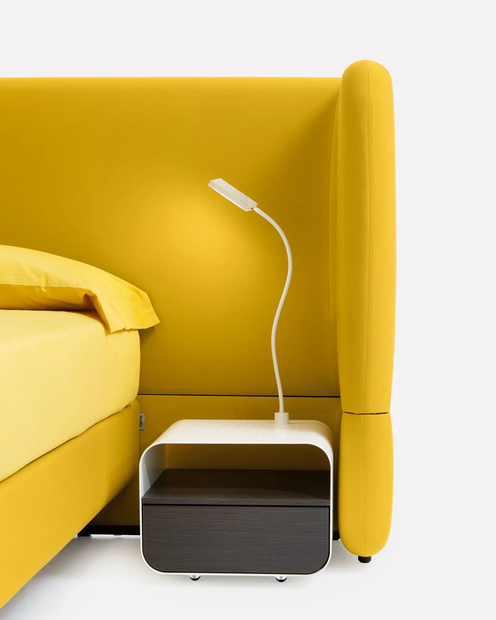 Accessori integrabili, in varie forme, per letto e divano: appoggi eleganti e funzionali con contenitori discreti.